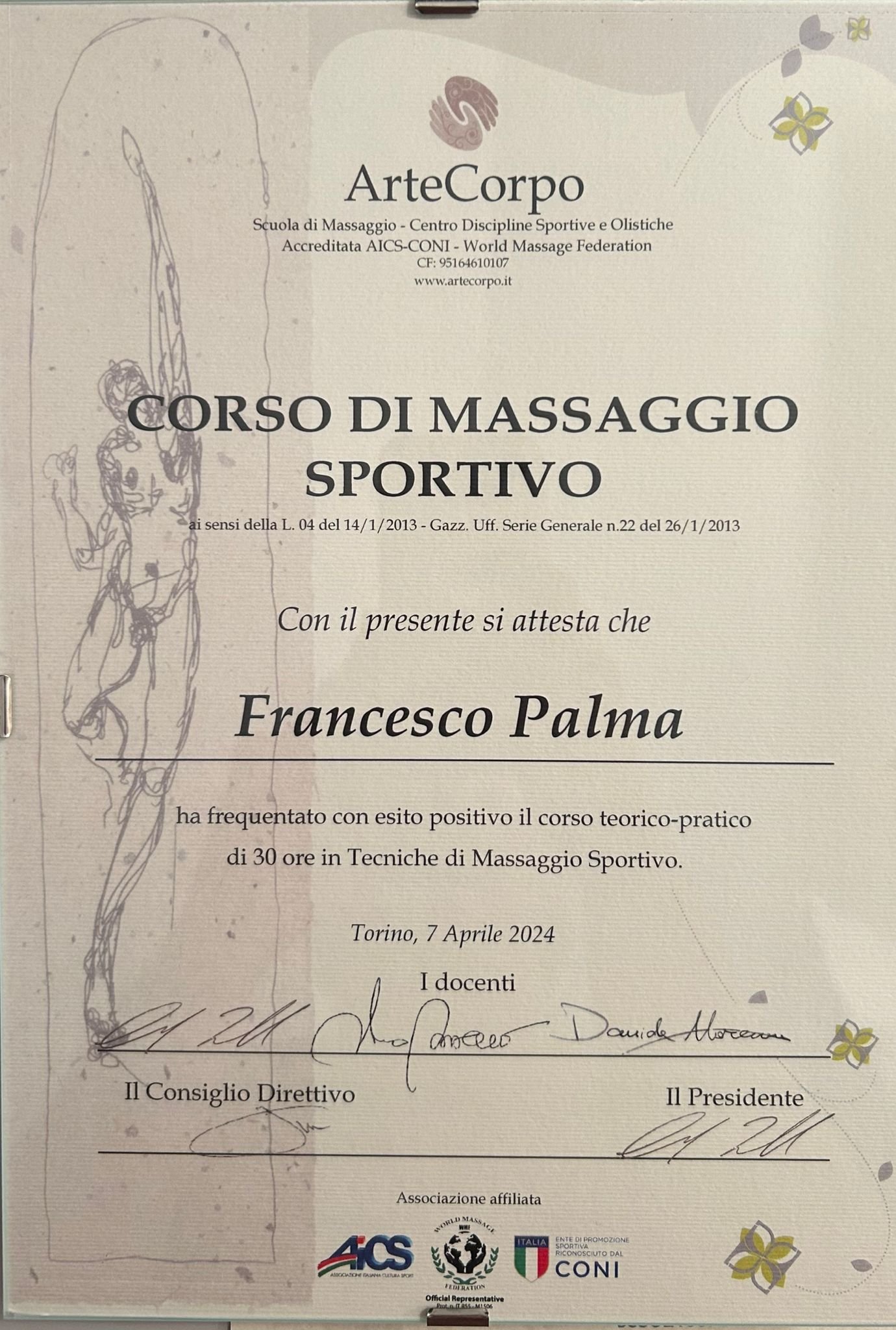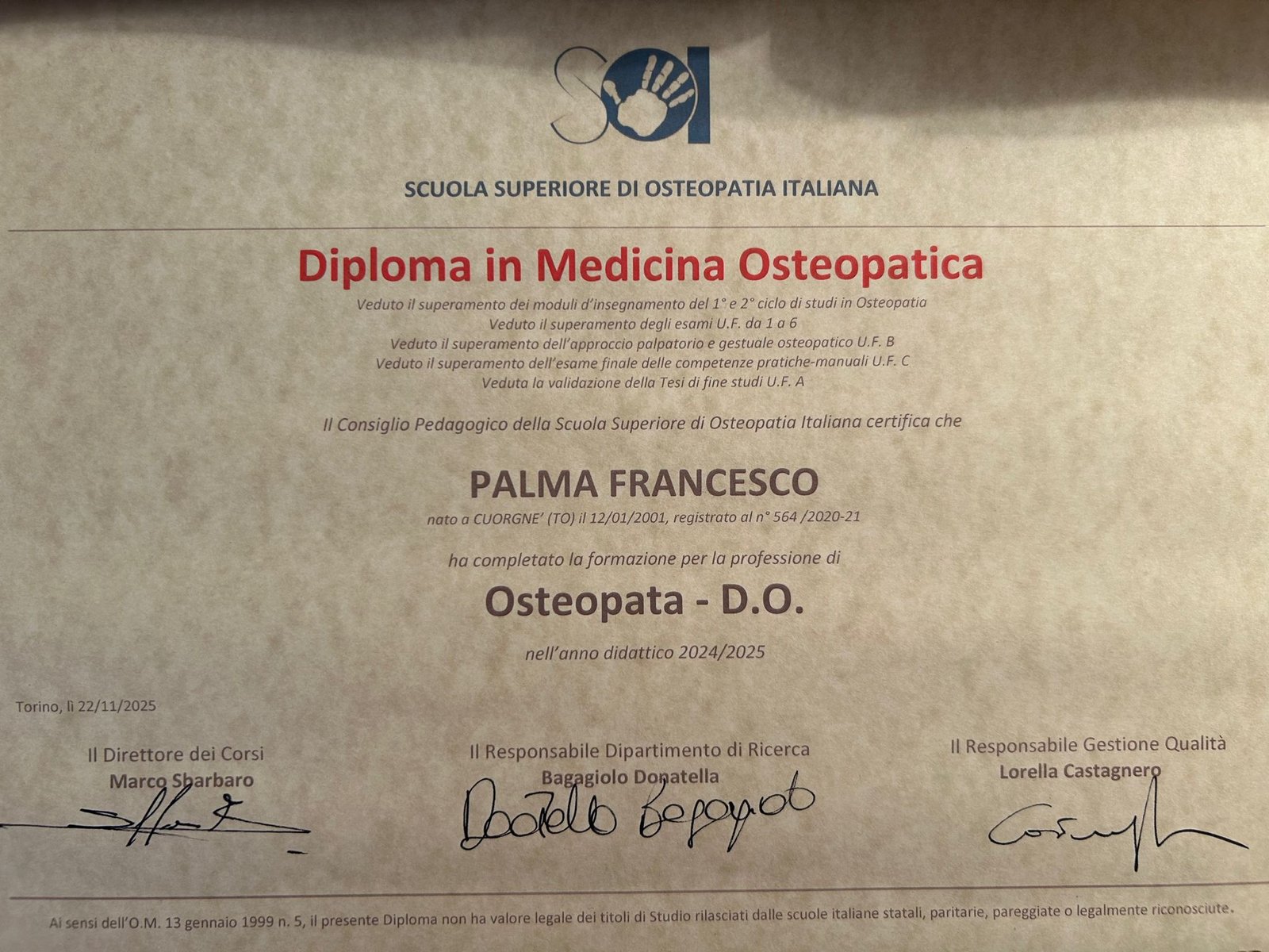 Sono Francesco Palma, osteopata a Rivalta di Torino, Rivoli e Torino.